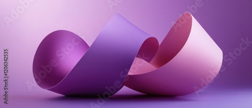 The watermark will not be included on Sticker.: Abstract 3d render of flowing purple and pink paper ribbon on a gradient background concept of fluid