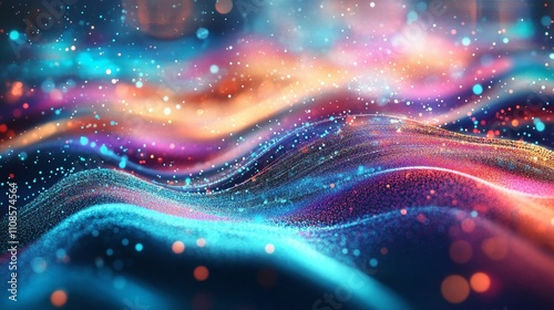 Sticker abstract 3d technology background with colorful neon waves in dark space - futuristic digital wallpa