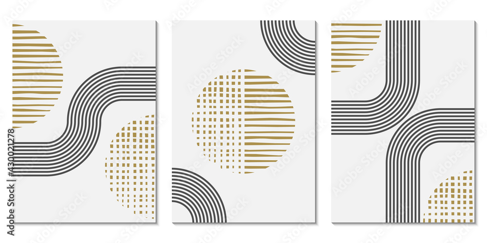The watermark will not be included on Sticker.: Abstract art background set with geometric shapes - minimal design with circles and lines - contempora