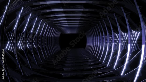 The watermark will not be included on Sticker.: Abstract background 3d animation moving through shiny metal structure tunnel loop - great for ads, sc