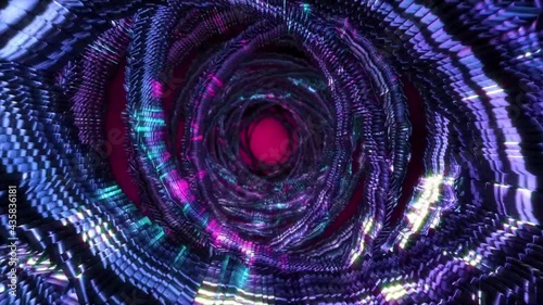 The watermark will not be included on Sticker.: Abstract background 3d shiny spiral and concentric shapes moving, fluctuating and glittering in a sp