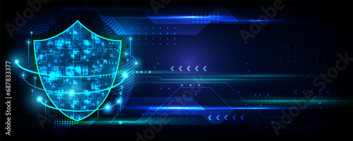 The watermark will not be included on Sticker.: Abstract background image, technology, data protection concept, communication network and global cyb