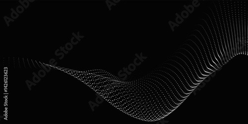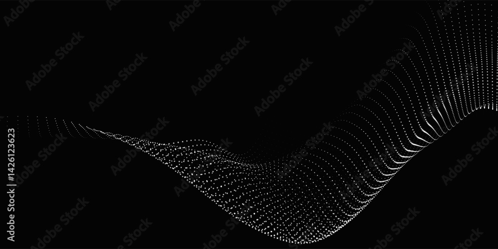 The watermark will not be included on Sticker.: Abstract background with dynamic black and white wave - futuristic dotted wave of bright particles on
