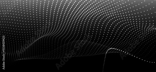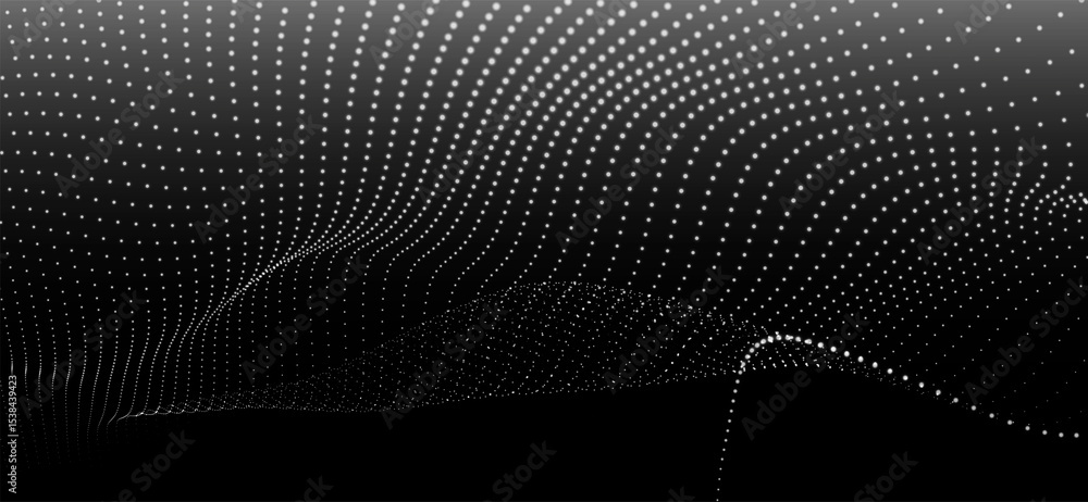 The watermark will not be included on Sticker.: Abstract background with dynamic black and white wave - futuristic dotted wave of bright particles on