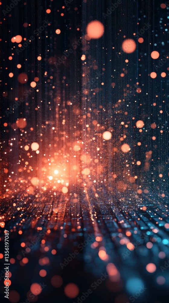 The watermark will not be included on Sticker.: Abstract background with glowing particles and light flare in dark space representing energy and mot
