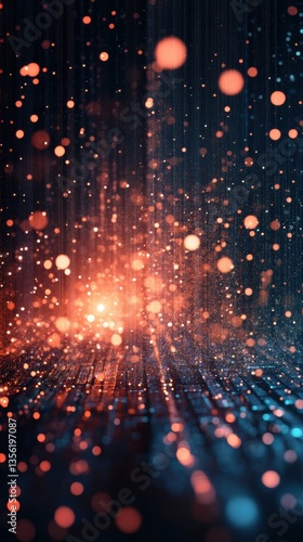 Abstract background with glowing particles and light flare in dark space representing energy and motSticker