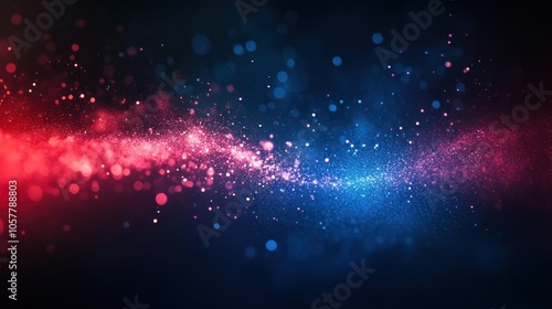 Sticker abstract background with red and blue bokeh lights on dark background.