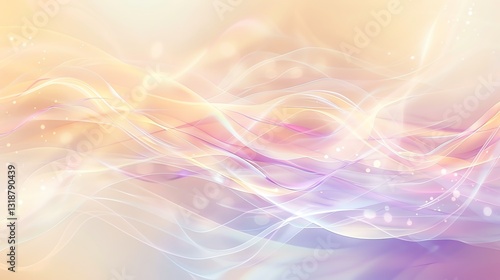 The watermark will not be included on Sticker.: Abstract background with wavy lines and light orbs in soft pink and yellow tones -