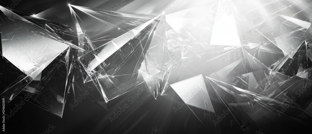 Abstract black and white background with geometric shapes and light effects for creative design projSticker