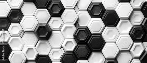 The watermark will not be included on Sticker.: Abstract black and white honeycomb pattern background with geometric shapes and textures for creativ