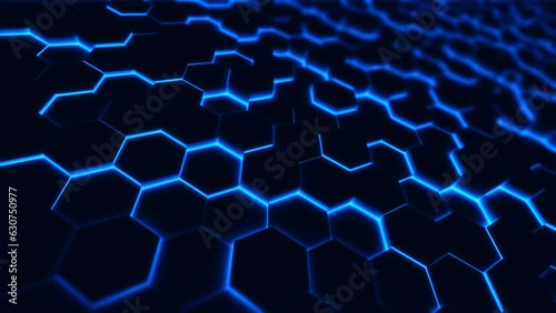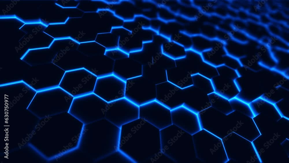 The watermark will not be included on Sticker.: Abstract blue background with futuristic glowing hexagons, 4k loop seamless animated technology back