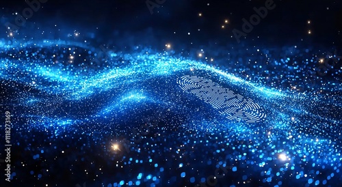 The watermark will not be included on Sticker.: Abstract blue fingerprint data security background