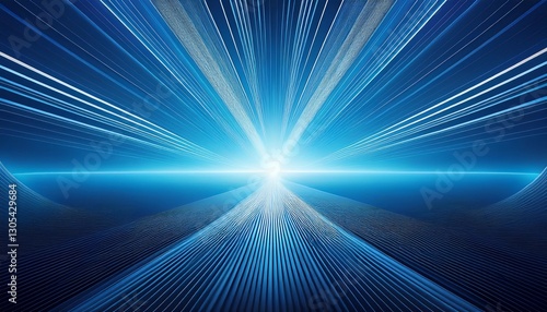 Abstract blue horizon with converging lines suggesting a path towards a bright lightSticker