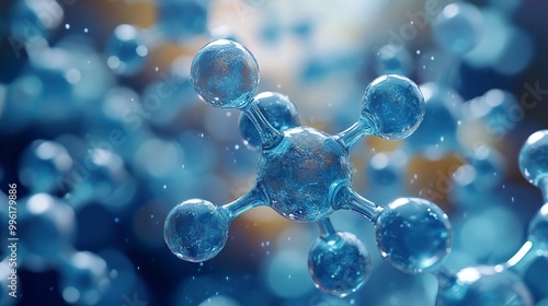 The watermark will not be included on Sticker.: Abstract blue molecule 3d render - science background