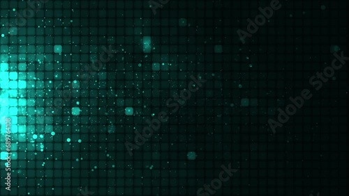 Sticker abstract bright mosaic. abstract turquoise led background with motion dots. technology digital squar
