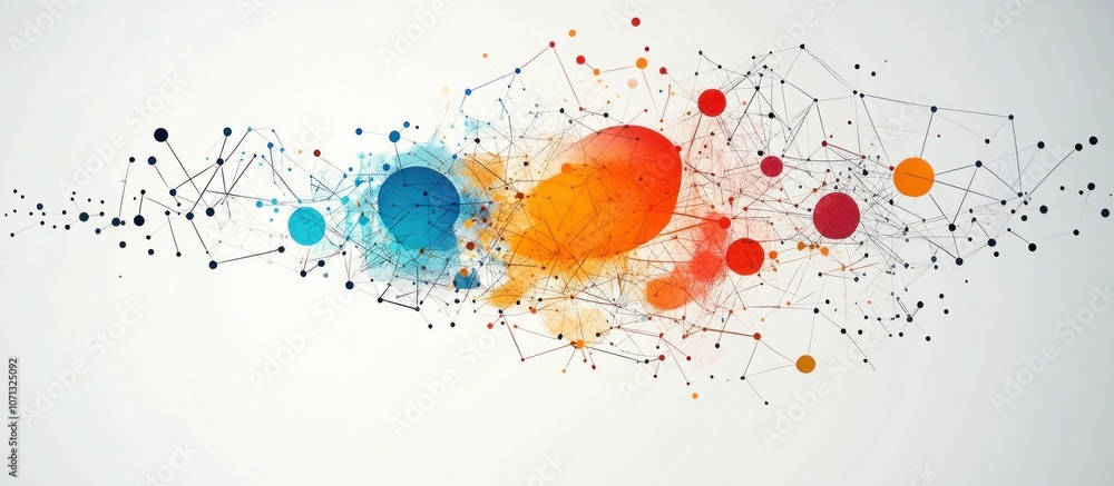 The watermark will not be included on Sticker.: Abstract colorful connected dots forming a network -