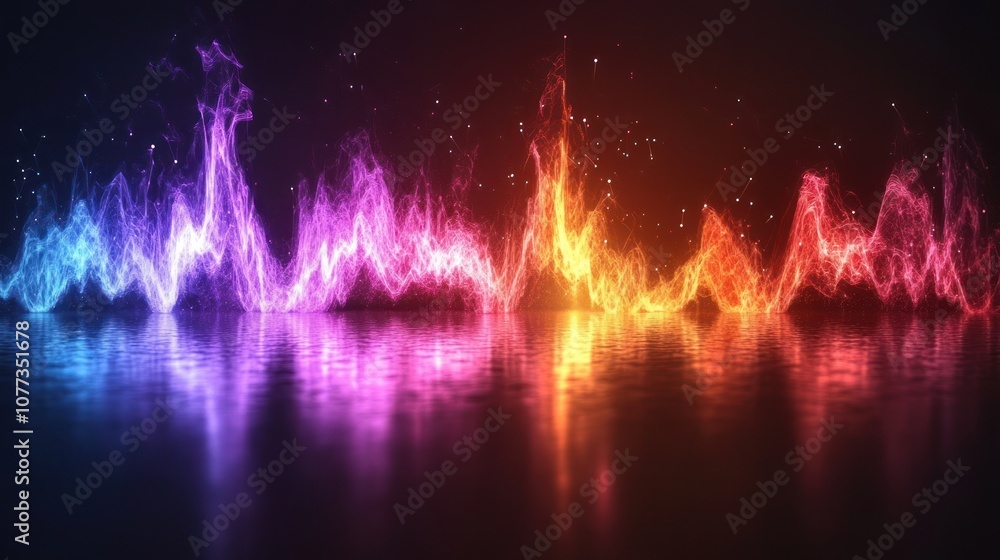 The watermark will not be included on Sticker.: Abstract colorful flames with reflection -