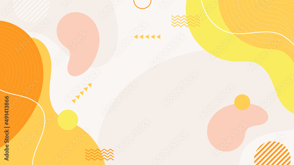 The watermark will not be included on Sticker.: Abstract colorful orange memphis flat geometric shapes background - abstract composition with lines s
