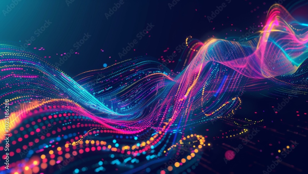 The watermark will not be included on Sticker.: Abstract colorful waves and lines on a dark background - ai -
