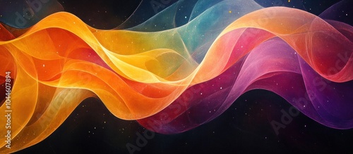 The watermark will not be included on Sticker.: Abstract colorful waves with a dark background and light spots -