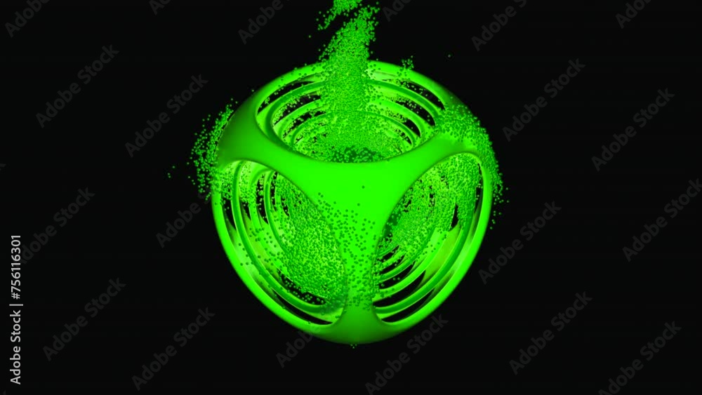The watermark will not be included on Sticker.: Abstract cube with flying particles inside - design - complex structure on a black background -
