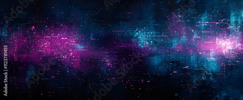 Abstract dark digital background with vivid pink and blue glowing textures and light particle effectSticker