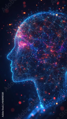 Sticker : Abstract digital background texture human head texture of glowing dots and lines on dark background