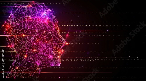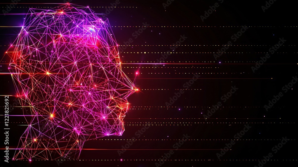 The watermark will not be included on Sticker.: Abstract digital head profile glowing polygonal network data stream technology concept