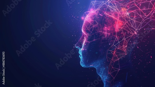 The watermark will not be included on Sticker.: Abstract digital human face - artificial intelligence concept of big data or cyber security -