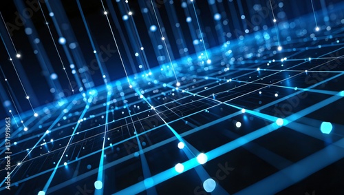 The watermark will not be included on Sticker.: Abstract digital network glowing blue lines and nodes futuristic technology background