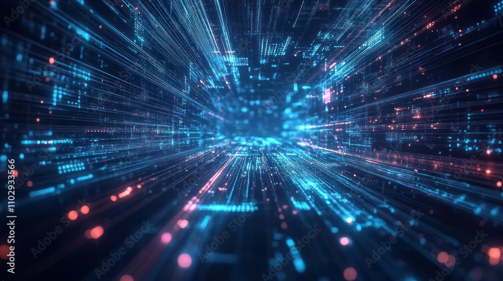 The watermark will not be included on Sticker.: Abstract digital representation of data flow, symbolizing speed and technology -