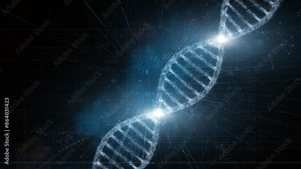 Sticker abstract digital shiny dna molecule on futuristic cyberspace network lines copy space illustration b - Stickers Sticker abstract digital shiny dna molecule on futuristic cyberspace network lines copy space illustration b - Stickers
