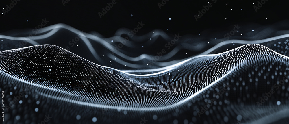 The watermark will not be included on Sticker.: Abstract digital wave pattern with glowing particles