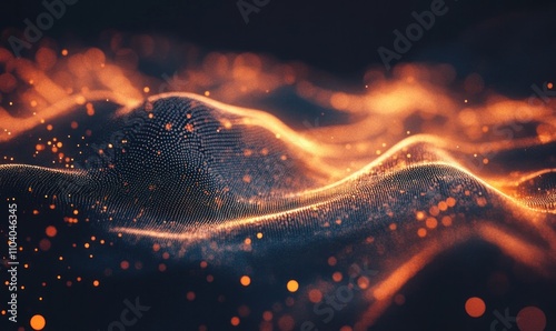 The watermark will not be included on Sticker.: Abstract digital waveform with glowing particles
