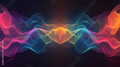 Sticker : Abstract flowing lines forming colorful symmetrical waves on a dark gradient background