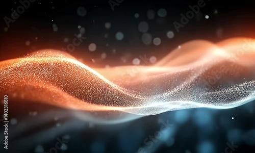 Abstract flowing waves of light particles in blue and orange with a smooth shimmering effect againstSticker