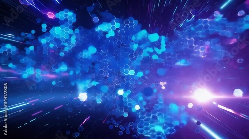 Abstract futuristic background is forming from glowing blue and purple hexagonal shapes with motion Sticker