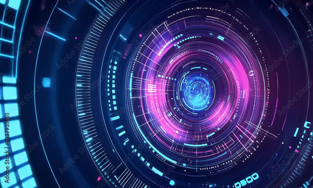 Abstract futuristic background with colorful glowing light effects and circuit board elements on a dSticker