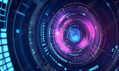 The watermark will not be included on Sticker.: Abstract futuristic background with colorful glowing light effects and circuit board elements on a d