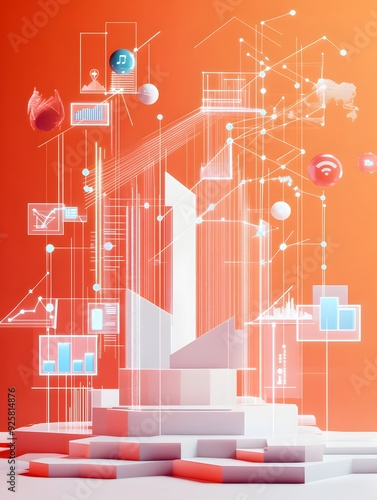 The watermark will not be included on Sticker.: Abstract futuristic digital architecture and technology conceptual