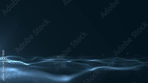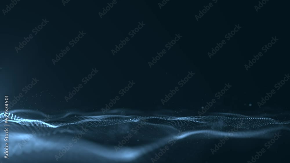 The watermark will not be included on Sticker.: Abstract futuristic wave background with particles, slow motion glowing particles on black backgroun
