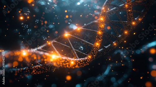 The watermark will not be included on Sticker.: Abstract glowing dna helix with bokeh lights on a dark background -