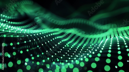 The watermark will not be included on Sticker.: Abstract glowing green wave - futuristic surface with bright blurred dots - modern technology or scien