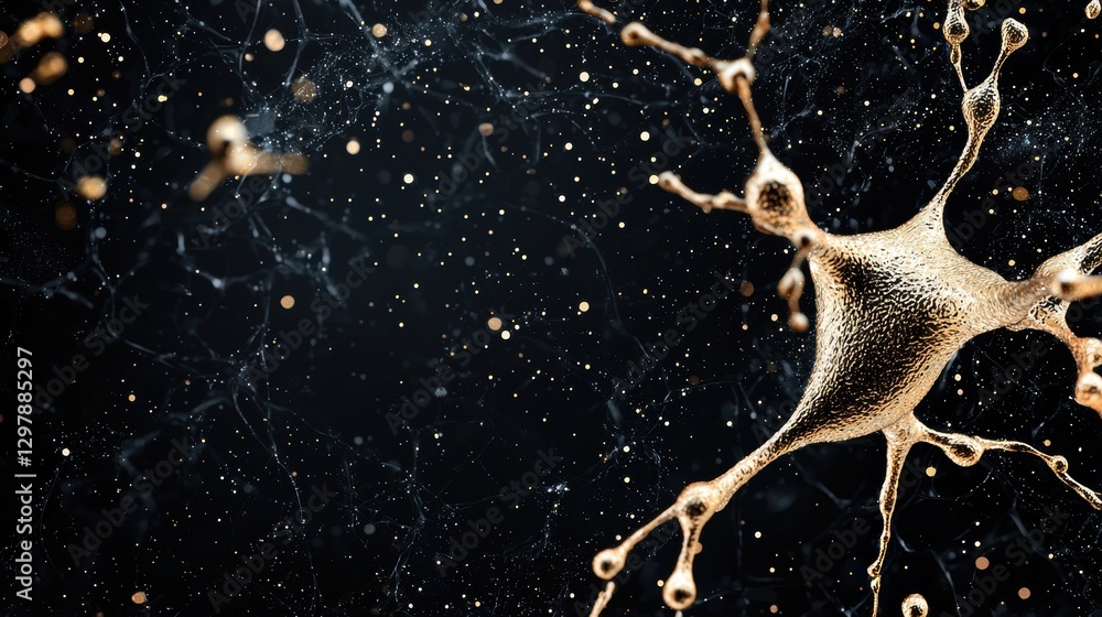 The watermark will not be included on Sticker.: Abstract golden particles flowing like liquid gold, forming intricate patterns and shapes against a