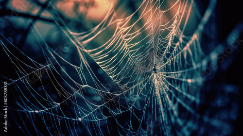 The watermark will not be included on Sticker.: Abstract illustration of a shiny spider web on a colored background, creating a blurry pattern of li