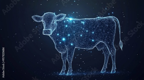 Abstract image of a cow in the form of a starry sky or space, consisting of points, lines, and shapeSticker