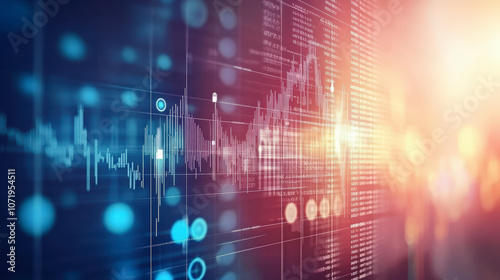 Abstract image of a glowing financial chart with data and graphs, symbolizing market analysis, econoSticker