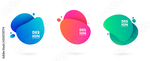 Sticker abstract liquid shape. fluid design. isolated gradient waves with geometric lines, dots. vector illu