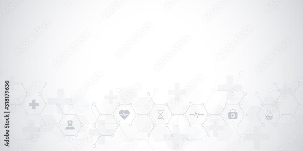 The watermark will not be included on Sticker.: Abstract medical background with flat icons and symbols - template design with concept and idea for h