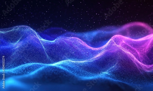 The watermark will not be included on Sticker.: Abstract neon waves with particle light effects